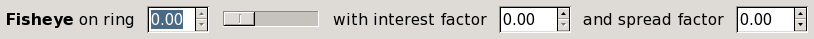 The fisheye controls give more space to a selected ring, compressing all the others. The slider controls which ring gets the most attention. The “interest factor” is how many times greater the ring spacing is for the chosen ring than it would be with no fisheye. The “spread factor” ranges from −1 to 1. It controls how many adjacent rings are expanded around the selected ring, with higher numbers meaning more spread.